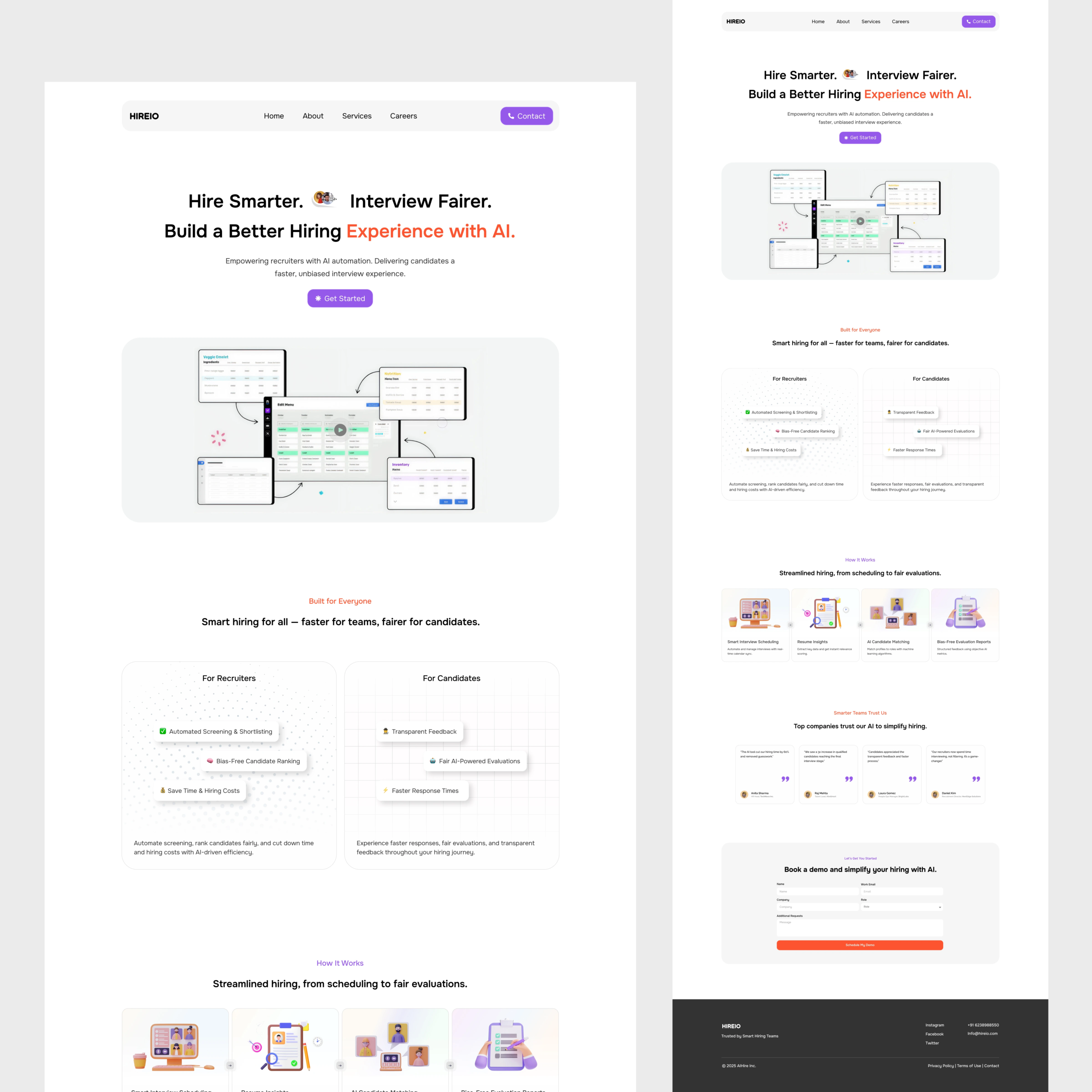 I designed this AI recruitment landing page with a focus on clarity, speed, and trust. Using a 12-column Figma grid, the layout delivers key benefits through a clear hero, smooth flow, and clean, modern design.