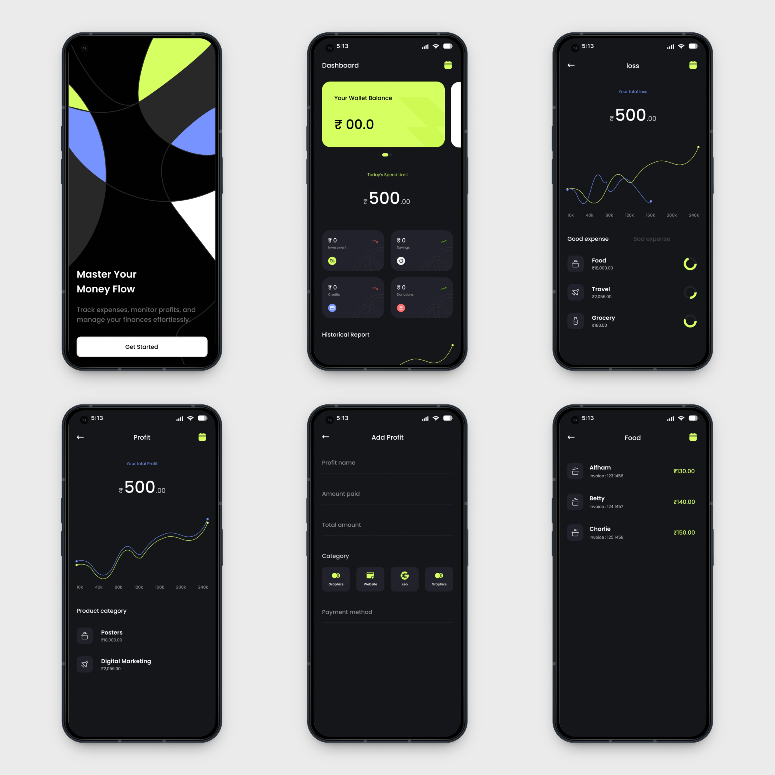 A minimal, user-friendly UI designed for effortless expense tracking and smart money insights. Clean layouts, intuitive graphs, and simplified navigation help users manage their finances with clarity and confidence.