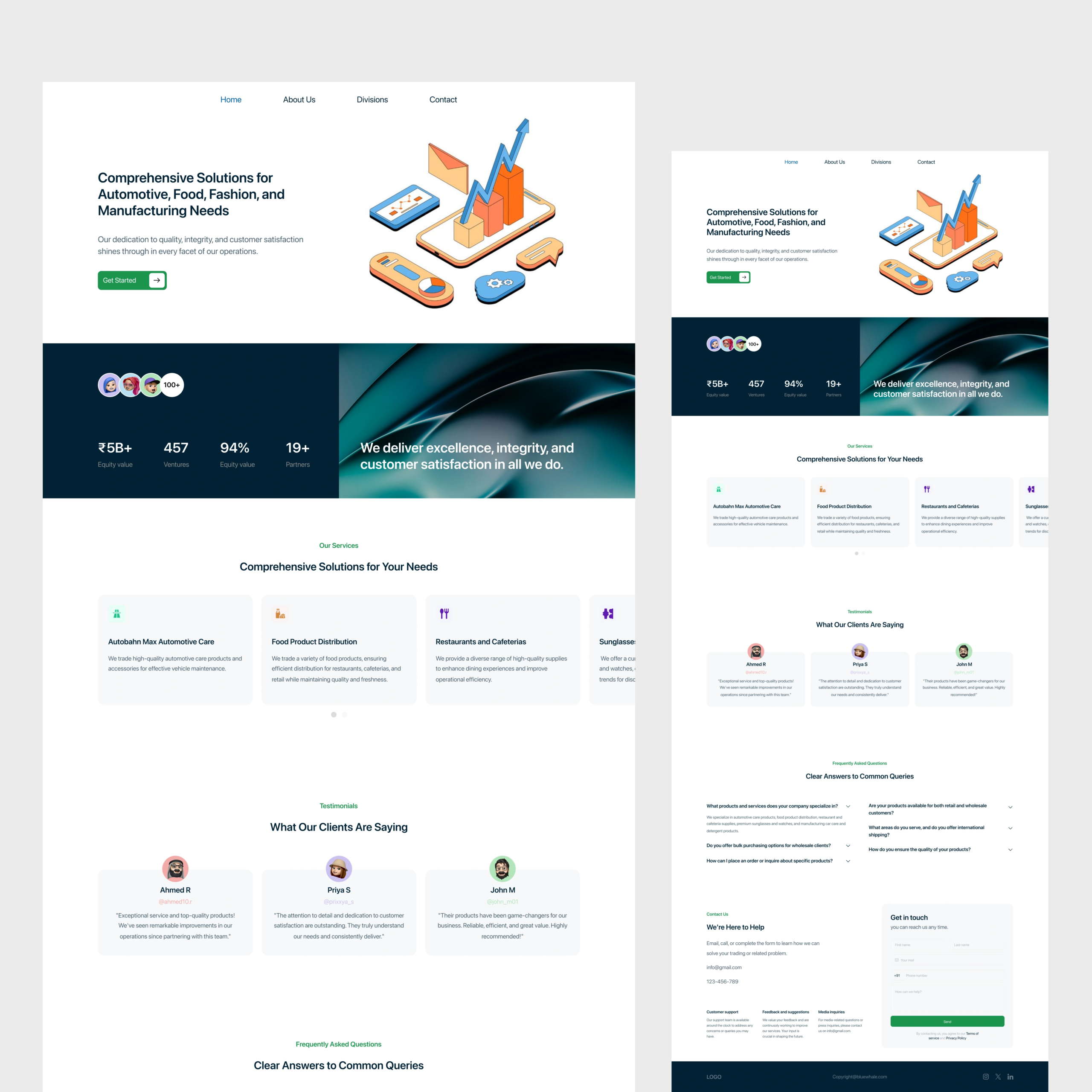 A clean, structured web design tailored for a manufacturing company—highlighting process efficiency, reliability, and forward-thinking innovation through clear visuals and intuitive navigation.